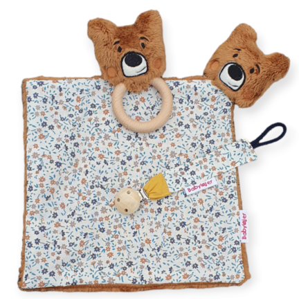 Sæt med nusseklud, rangle og suttesnor. Fin gaveidé til en lille ny,