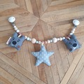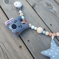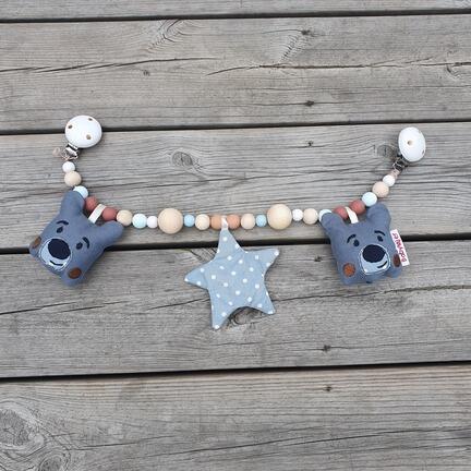 Fin barnevognskæde i støvet blå med små bamsehoveder.
