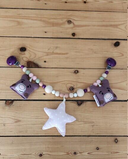 Barnevognskæde støvet lyng med bamsehoveder