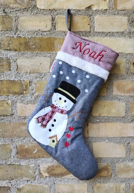 Gør julen personlig og få broderet navn på denne skønne julesok med snemand til små jule overraskelser.