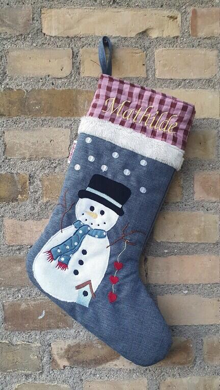 Gør julen personlig og få broderet navn på denne skønne julesok med snemand til små jule overraskelser.