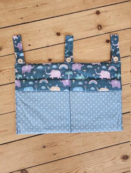 Sød praktisk sengelomme med 2 lommer til opbevaring af sovebamsen eller sutterne.