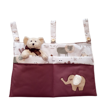 Sød praktisk sengelomme med 2 lommer til opbevaring af sovebamsen eller sutterne.