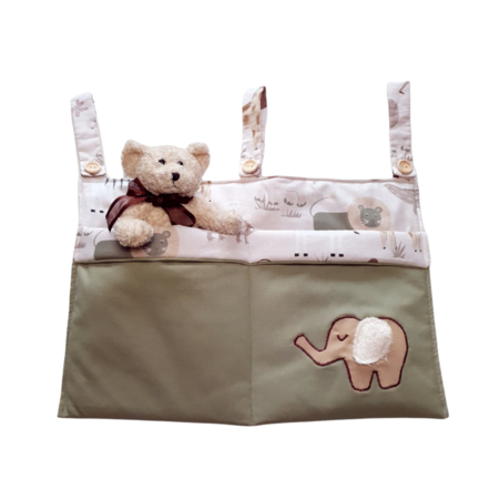 Sød praktisk sengelomme med 2 lommer til opbevaring af sovebamsen eller sutterne.
