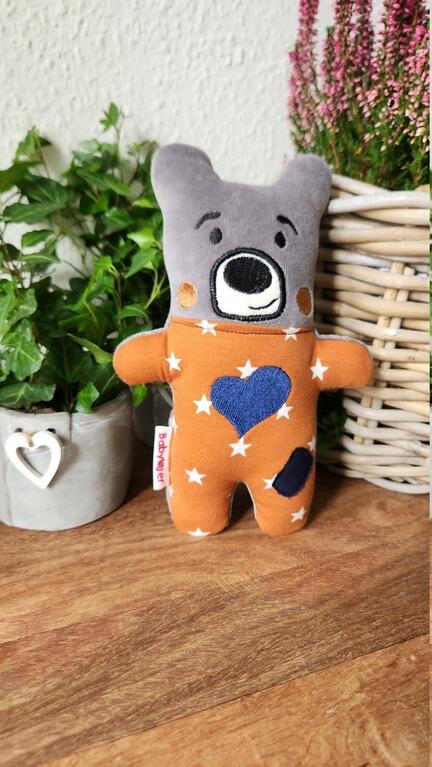 Dejlig blød sovebamse fra Babyløjer, i fin natdragt med broderet hjerte.