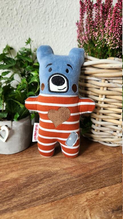 Dejlig blød sovebamse fra Babyløjer, i fin natdragt med broderet hjerte.